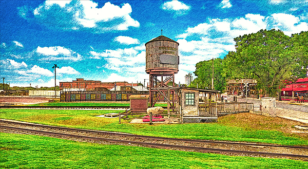 Stockyards station wooden water tower in Fort Worth, Texas - digital painting made from a photo where I made some small edits and I added a pencil... more