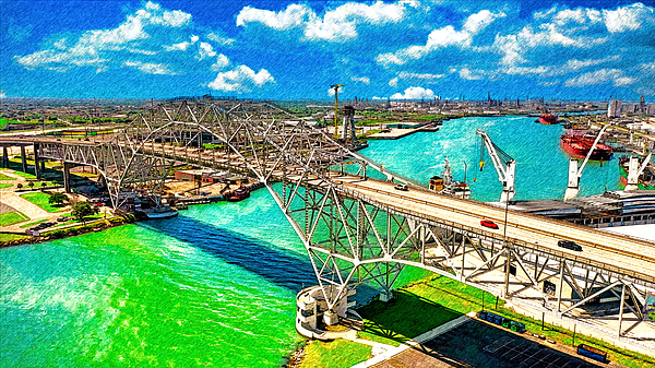 The Corpus Christi Harbor Bridge – digital painting made from a photo where I made some small edits and I added a pencil sketch effect. The Corpus Christi Harbor Bridge is a through arch bridge located in Corpus Christi, Texas. The current Harbor Bridge was completed in 1959, allowing ships with a maximum above-waterline height of 138 feet to pass underneath.