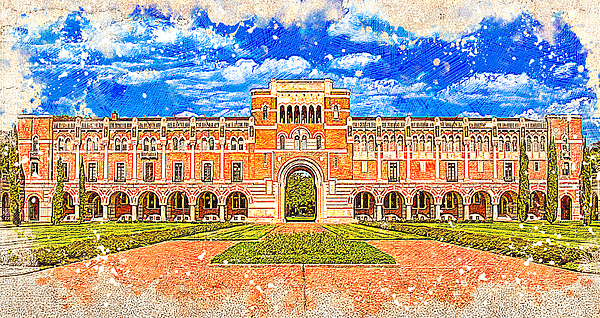 The Lovett Hall of the Rice University - digital painting made from a photo where I made some small edits and I added colored drawing texture. The Lovett Hall, formerly known as the Administration Building, is the institute's first building, built in 1911. The building is located in the Academic Quadrangle, and was later renamed in honor of Rice’s founding president, Edgar Odell Lovett. Rice University (William Marsh Rice University) is a private research university in Houston, Texas.